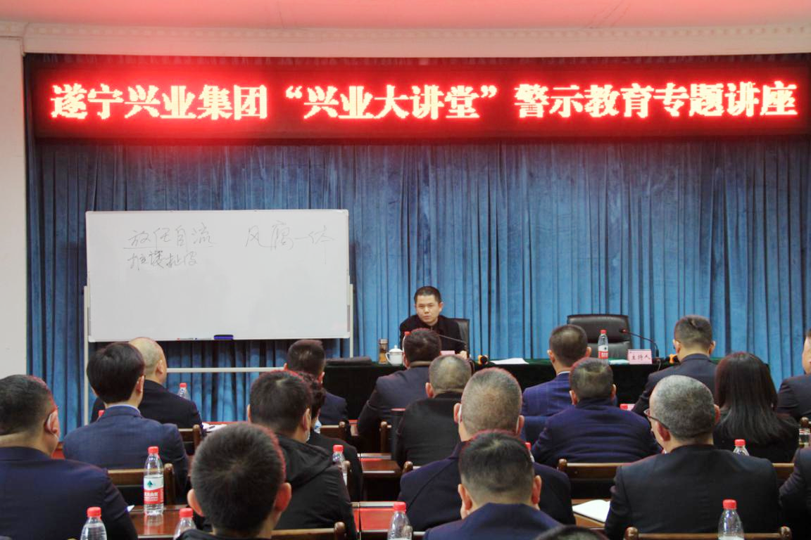 ? ? 11月26日,遂寧興業(yè)集團(tuán)舉辦“興業(yè)大講堂”警示教育專題講座,邀請(qǐng)市紀(jì)委副書記、市監(jiān)委副主任韓麟主講授課。集團(tuán)領(lǐng)導(dǎo)班子成員、中層干部及部分職工代表、各直屬企業(yè)高管共60人參加講座。