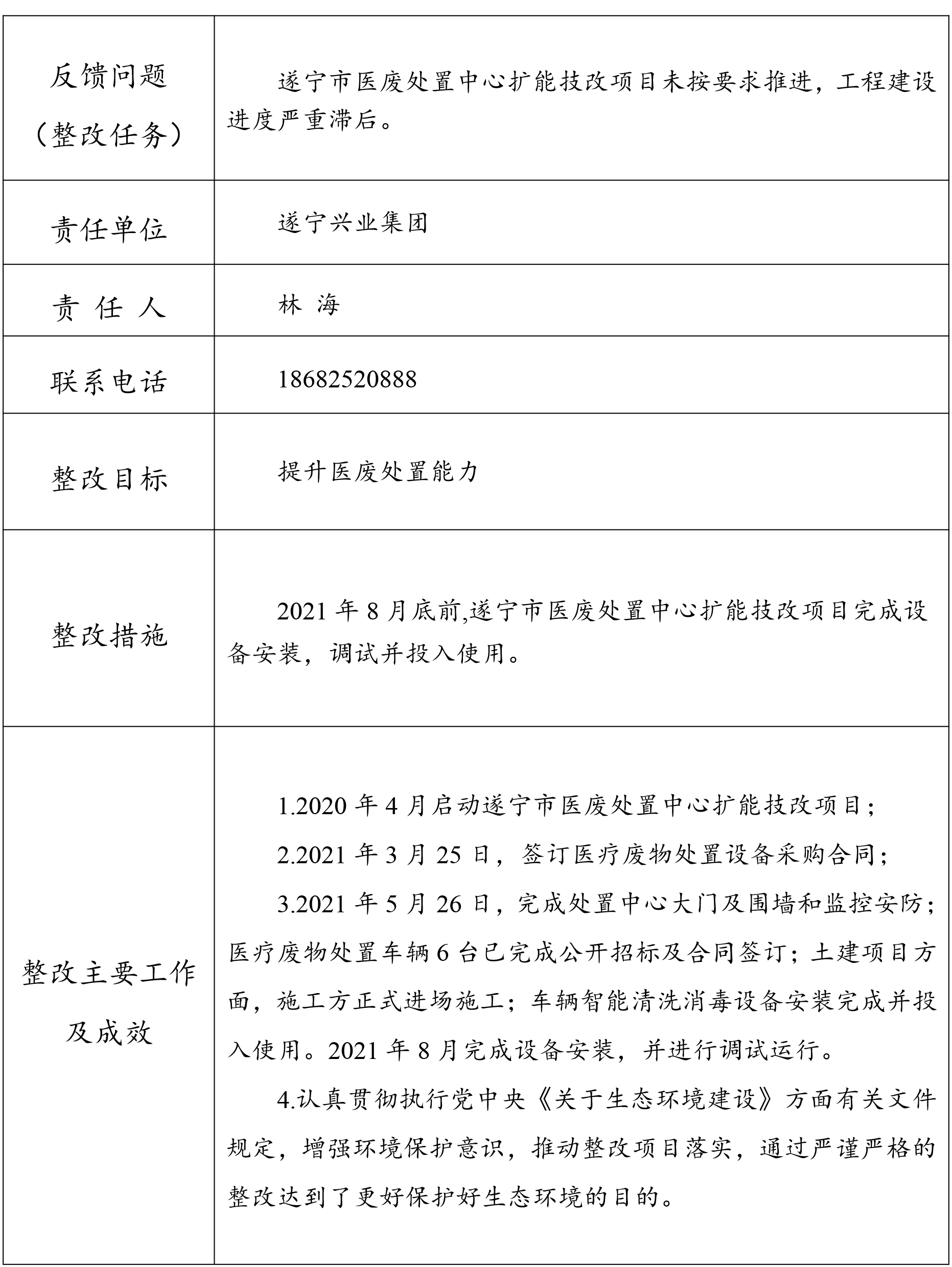 生態(tài)環(huán)境保護(hù)督察反饋意見整改任務(wù)完成情況公示表